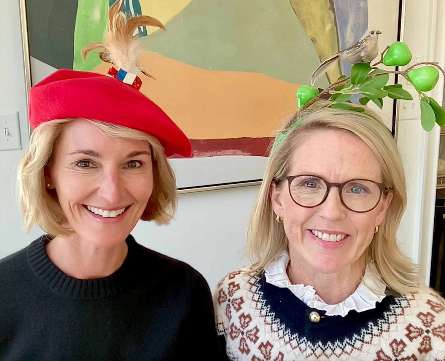 Amy Baker and Melissa Anton grew up together in St. Louis, MO. Through ballet, school, and sailing their families grew very close and celebrated most holidays together. After college, their paths took them to different places, but in 2021, they reunited in Charlotte, NC, where they and their respective families now live less than a mile from each other. In 2024, a conversation over coffee about their childhood holidays together sparked an idea. Before long, they were rolling up their sleeves to bring their beloved 12 Days of Christmas Props tradition to their community.